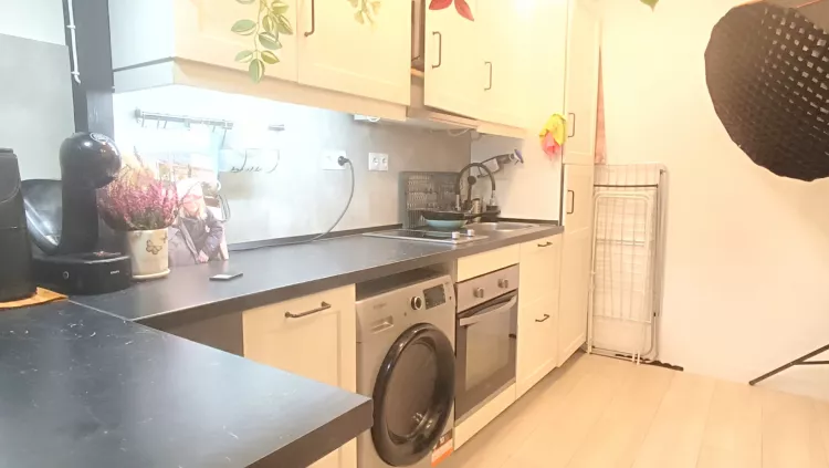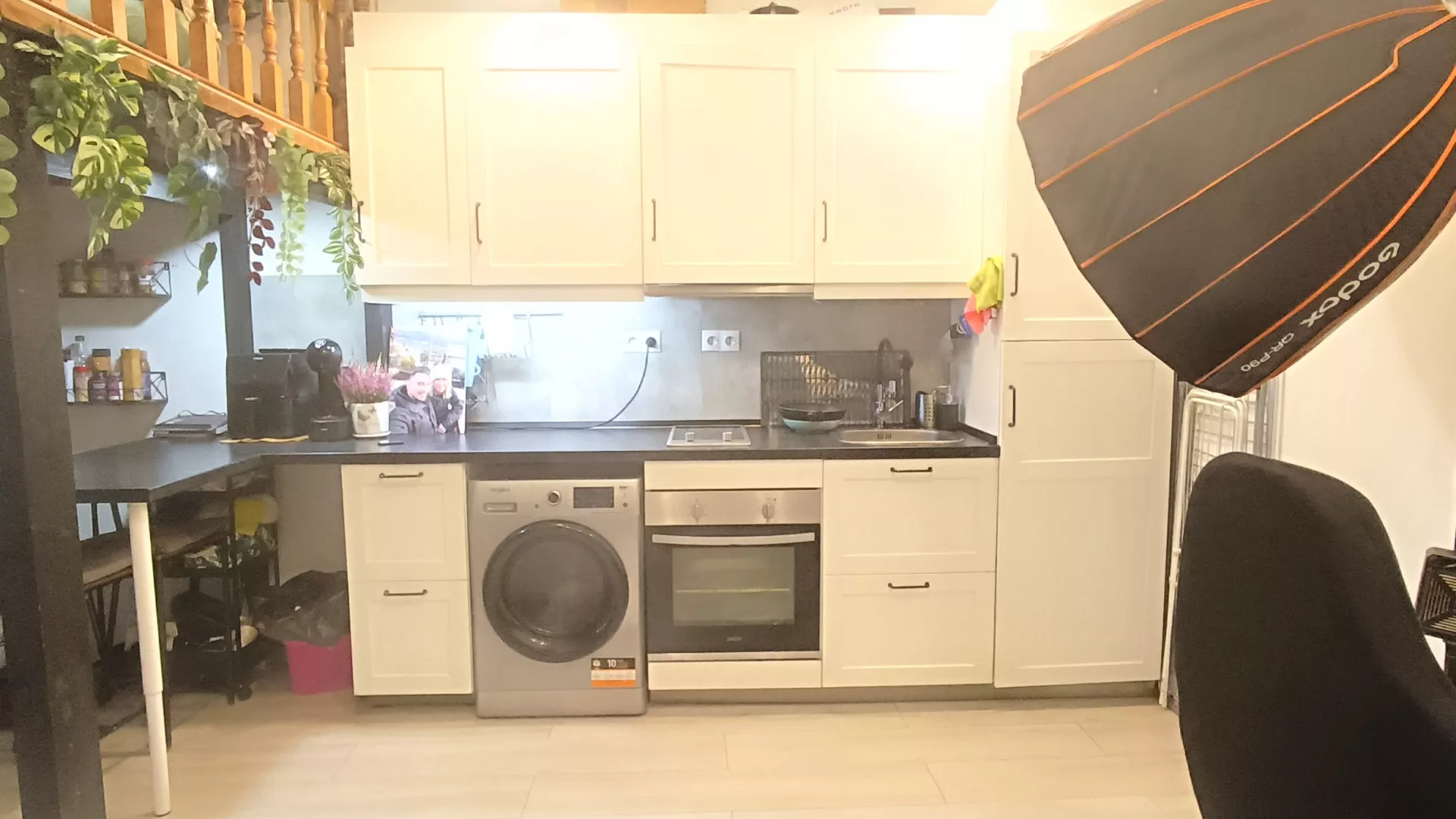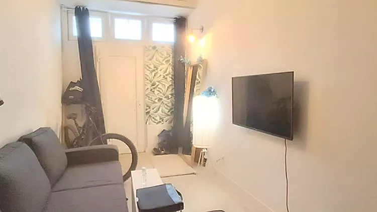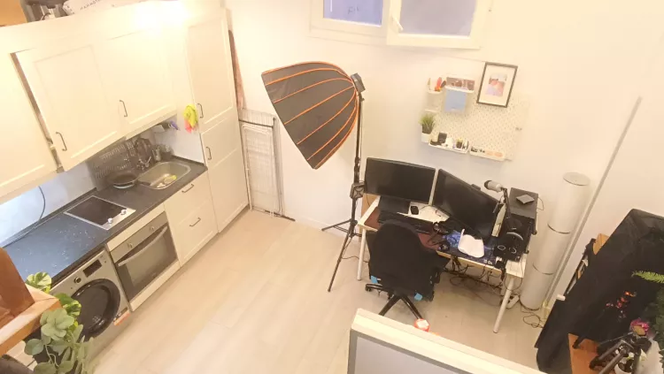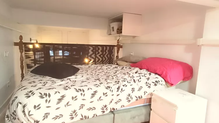La vivienda cuenta con un pasillo de entrada, una cocina americana integrada al salón, un baño completo y un dormitorio situado en un altillo, que aporta un toque cálido y original al espacio.