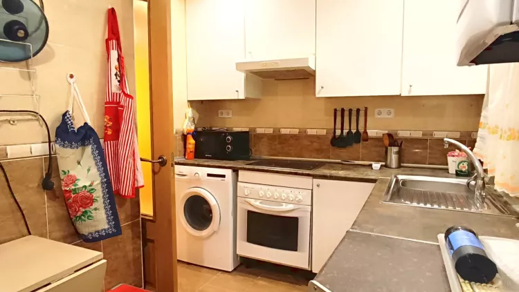 La cocina, totalmente amueblada y equipada con electrodomésticos, ofrece un espacio práctico y moderno.