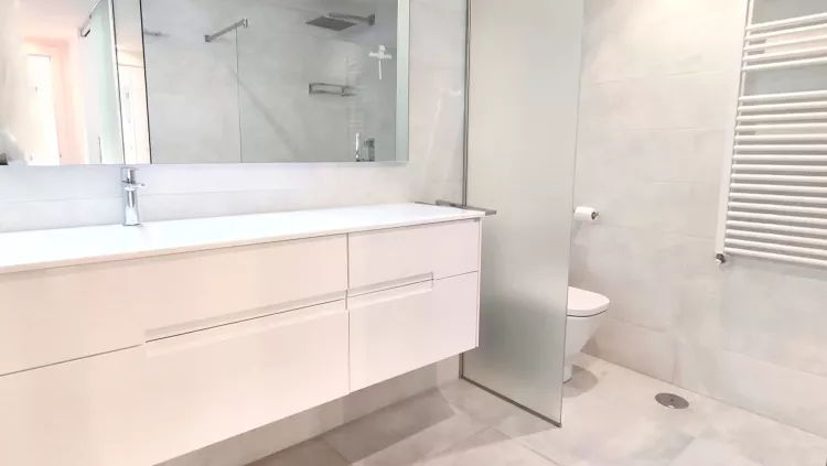 La vivienda destaca por su excelente distribución y luminosidad. Dispone de 3 dormitorios, incluido un dormitorio principal con baño en suite, y un segundo baño completo. La cocina americana, abierta al salón, aporta amplitud y un estilo contemporáneo ideal para el día a día.