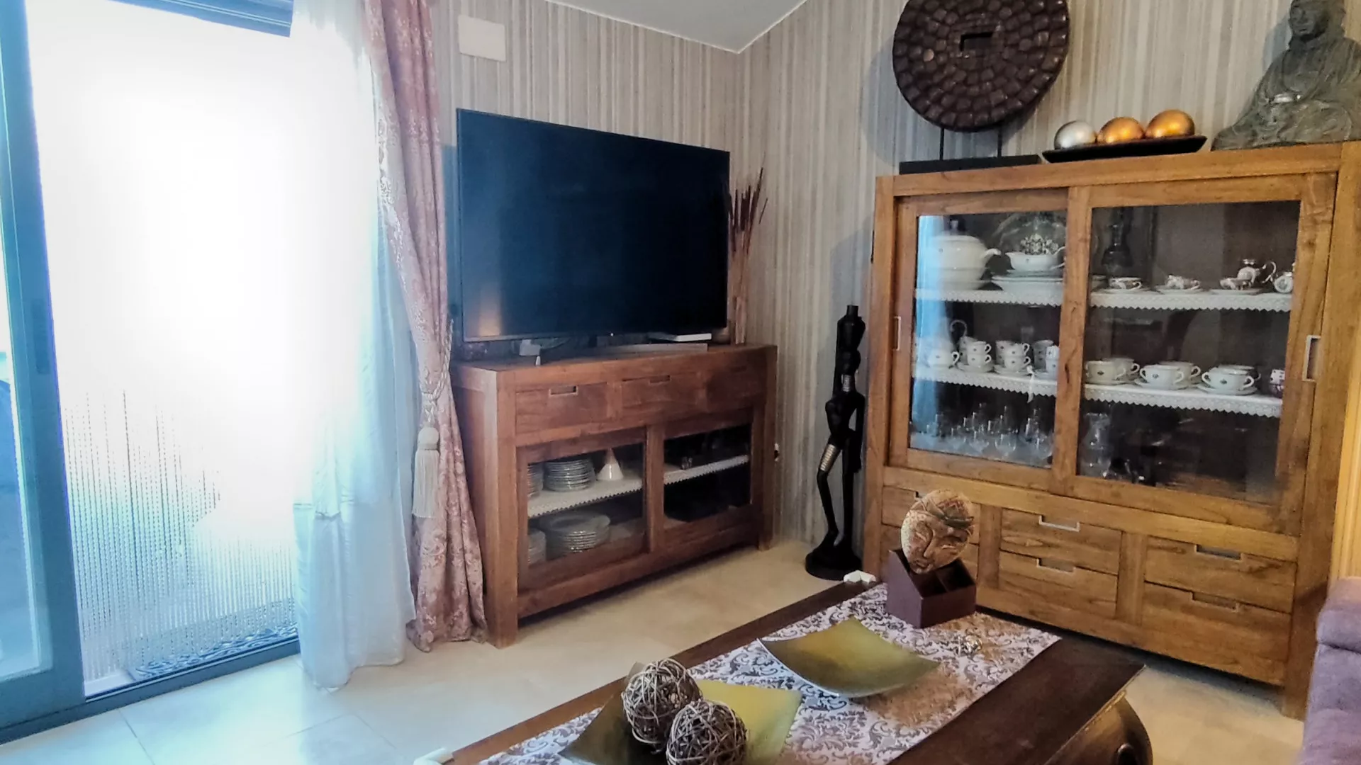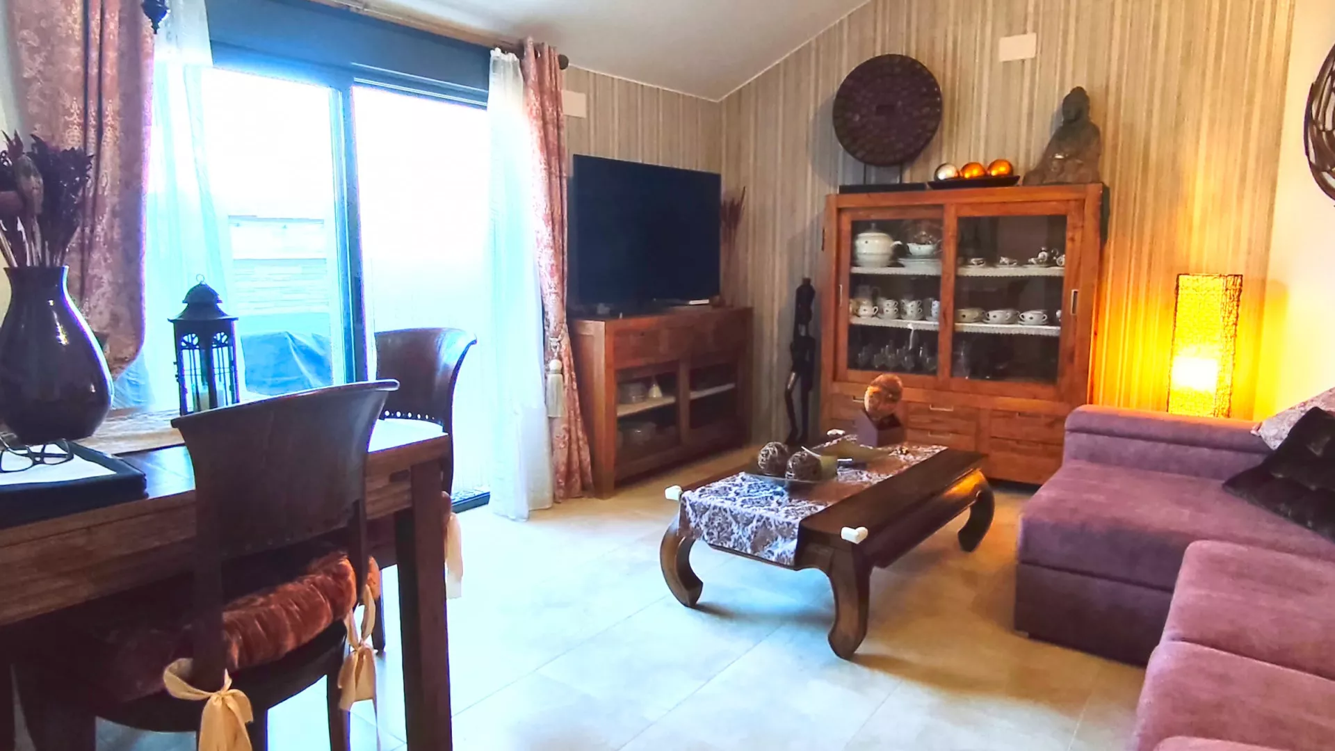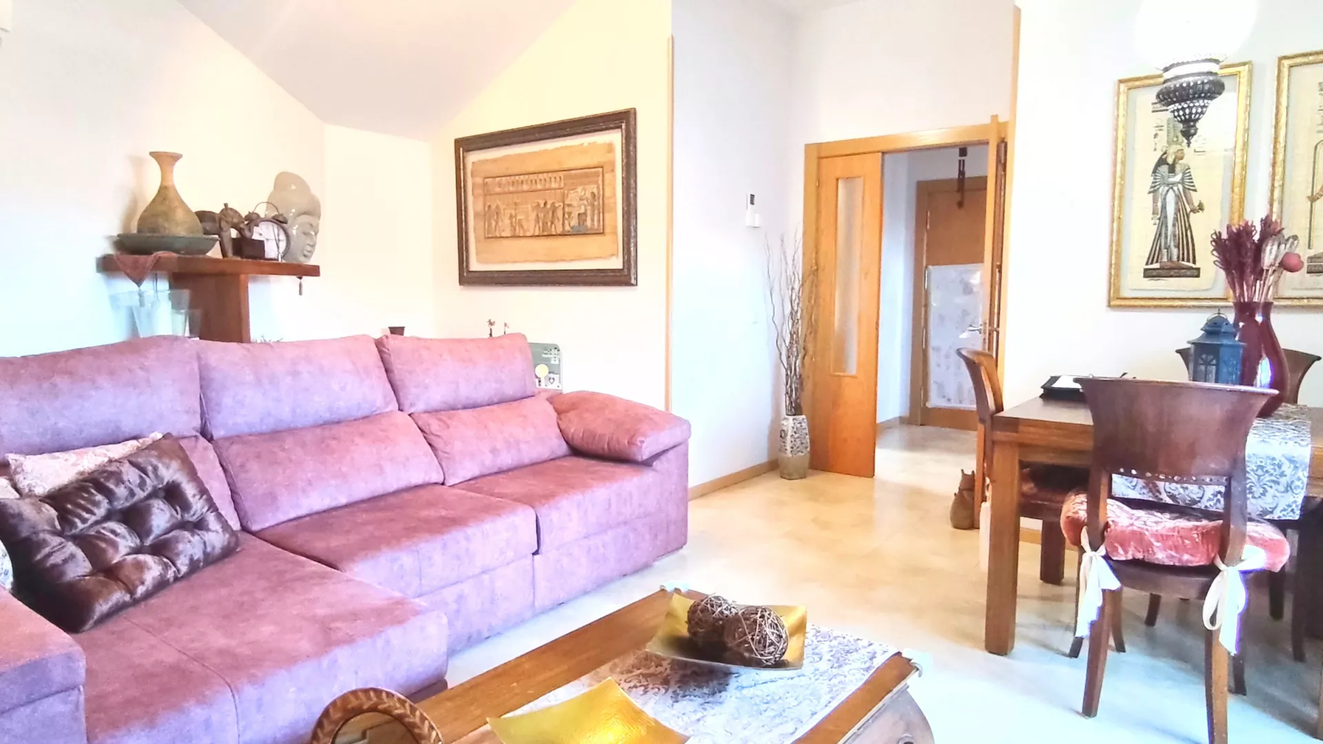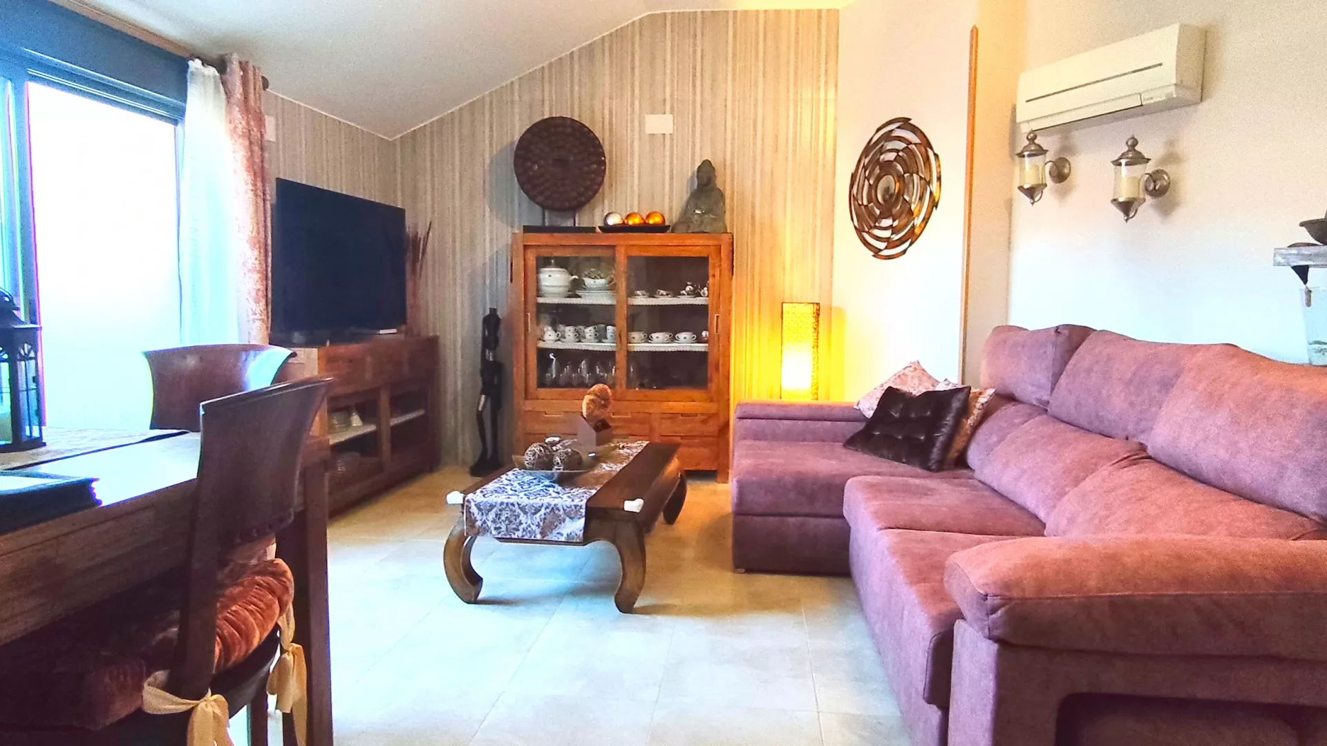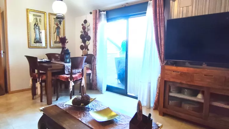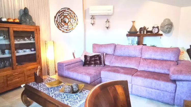 La vivienda cuenta con hall de entrada desde el que accedemos a un amplio y luminoso salón, equipado con aire acondicionado y bomba de calor. Desde el salón se accede a una agradable terraza, perfecta para disfrutar del exterior.