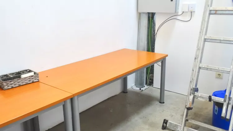 ATANCE alquila estupenda nave de esquina situada en la zona industrial de Tres Cantos. Con una superficie de unos 200 metros por cada planta. Esta nave tiene dos alturas, la planta baja tiene acceso para carga y descarga, zona de almacén diáfana, archivador, despacho o sala office y un baño adaptado para minusválidos. En la planta alta está acondicionada para oficinas, dispone de una sala de reuniones, un cuarto de baño, un despacho y una sala office. Tiene instalación solar para el agua caliente, bomba de aire frio-calor y una estufa de pellets. Cuenta con cuatro plazas de garaje interiores mas una parcela en la entrada en la que tb se puede aparcar. Nave con muy buen estado de conservación.