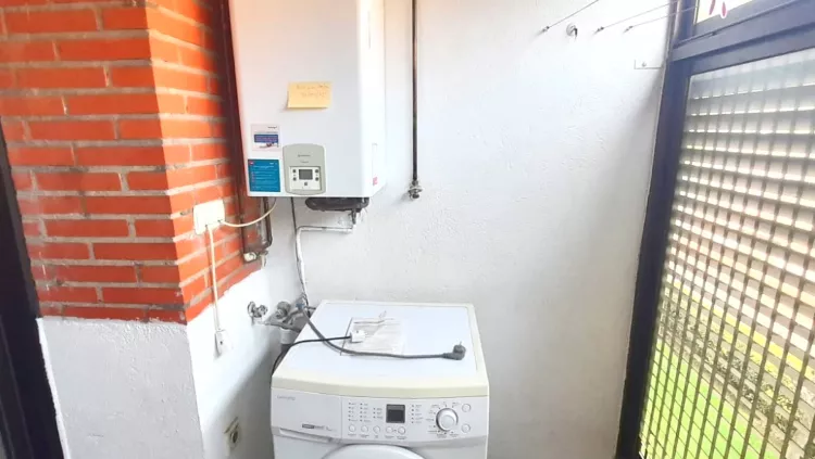 También tiene una cocina totalmente amueblada y equipada con un tendedero en el que encontramos la caldera ya que la calefacción es individual de gas natural teniendo además la posibilidad de hilo radiante para calentar el suelo de la vivienda.